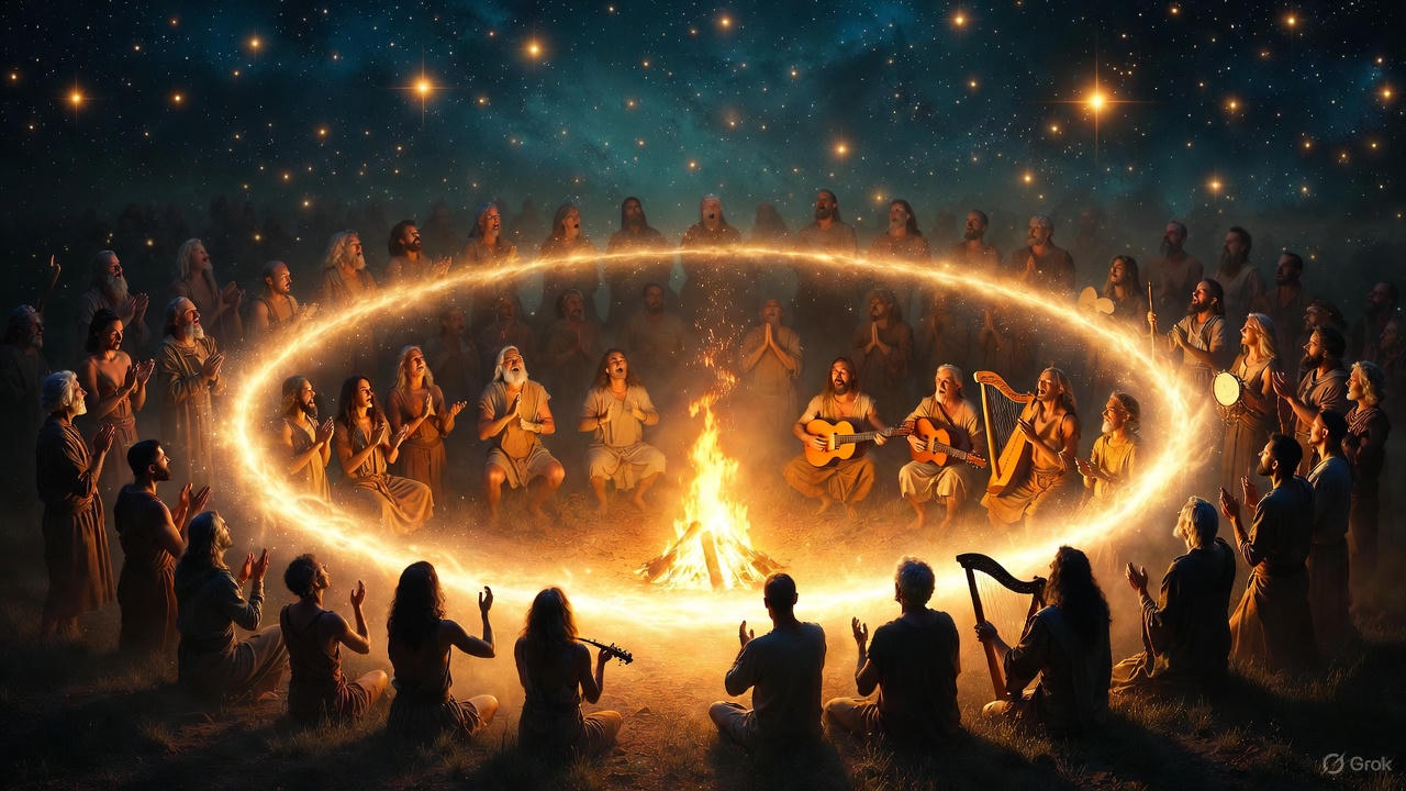 Eliade chamava o tempo do mito de tempo sagrado ou tempo primordial. É o tempo que não corre, não envelhece, não se perde. É o tempo circular, eterno, que sempre retorna à origem. Ao realizar um rito ou contar um mito, o homem rompe o tempo cronológico e volta a participar do tempo dos deuses. O sagrado não é lembrado, é revivido. O rito é o meio pelo qual o homem recria o começo e se reconecta à ordem divina. Assim, cada festa, cada iniciação e cada canto são, na verdade, recriações do ato original da criação.